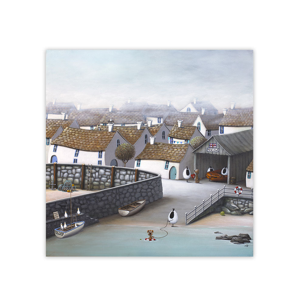 Available as a mini canvas sized at 25 x 25cm or as a larger framed print under glass no mount and in white frame, sized at 55 x 55cm (outer frame dimensions are 58 x 58cm)